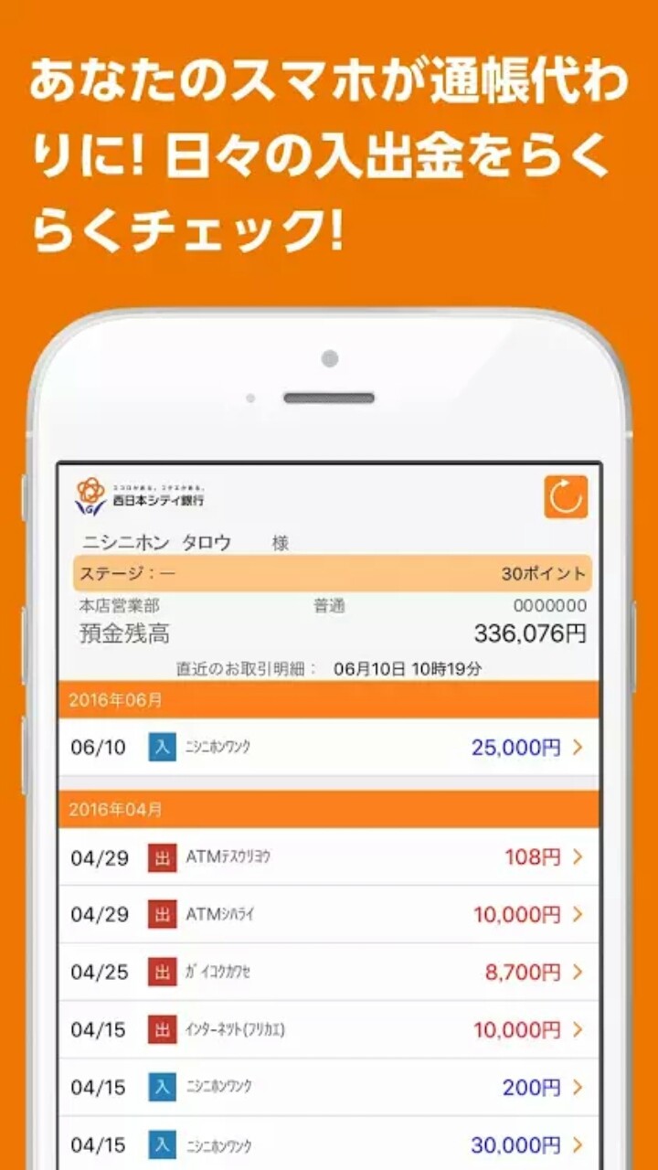 実は、西日本シティ銀行は、スマートフォンで銀行口座の入出金記録が確認できるアプリを提供しています。