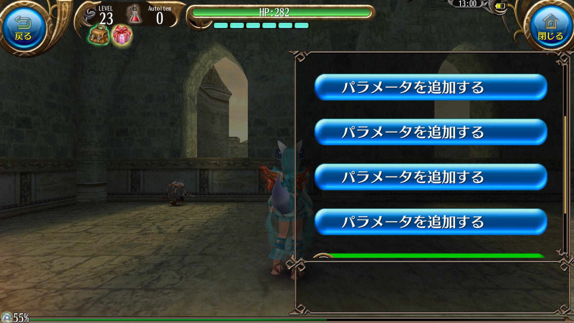 ゲームアプリをダウンロードしてスタートするか、すでにキャラクターを持っている方はメニューからキャラクターを開いてパラメーターをタップすれば新規で作成できます。