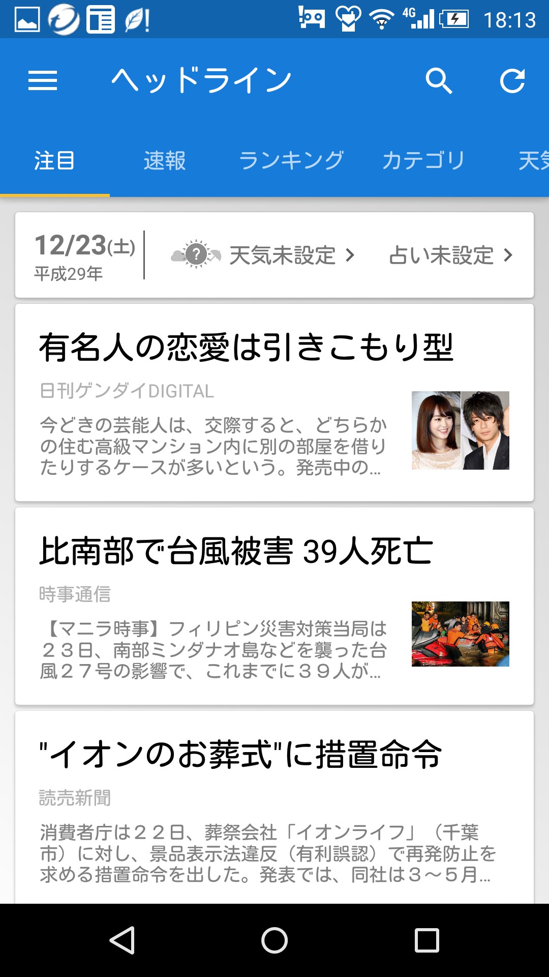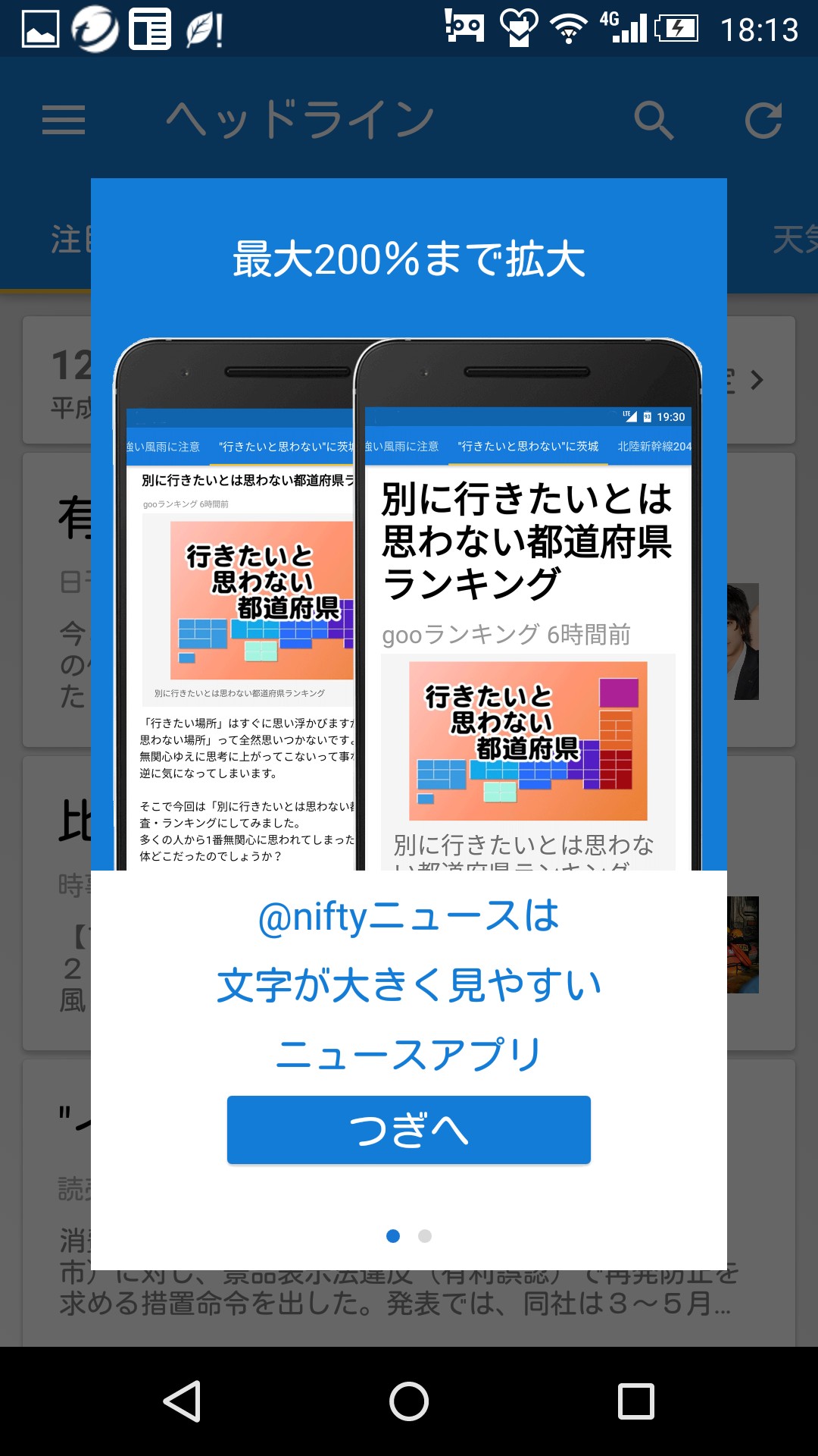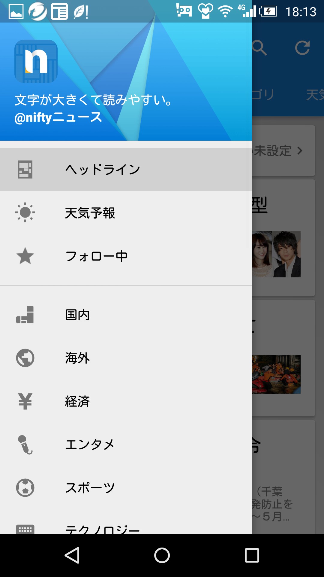 数々のアプリを見てきてたどり着いたものが@niftyの「ニュース 新聞 雑誌 無料読み放題!天気予報ニュース アプリ」です。