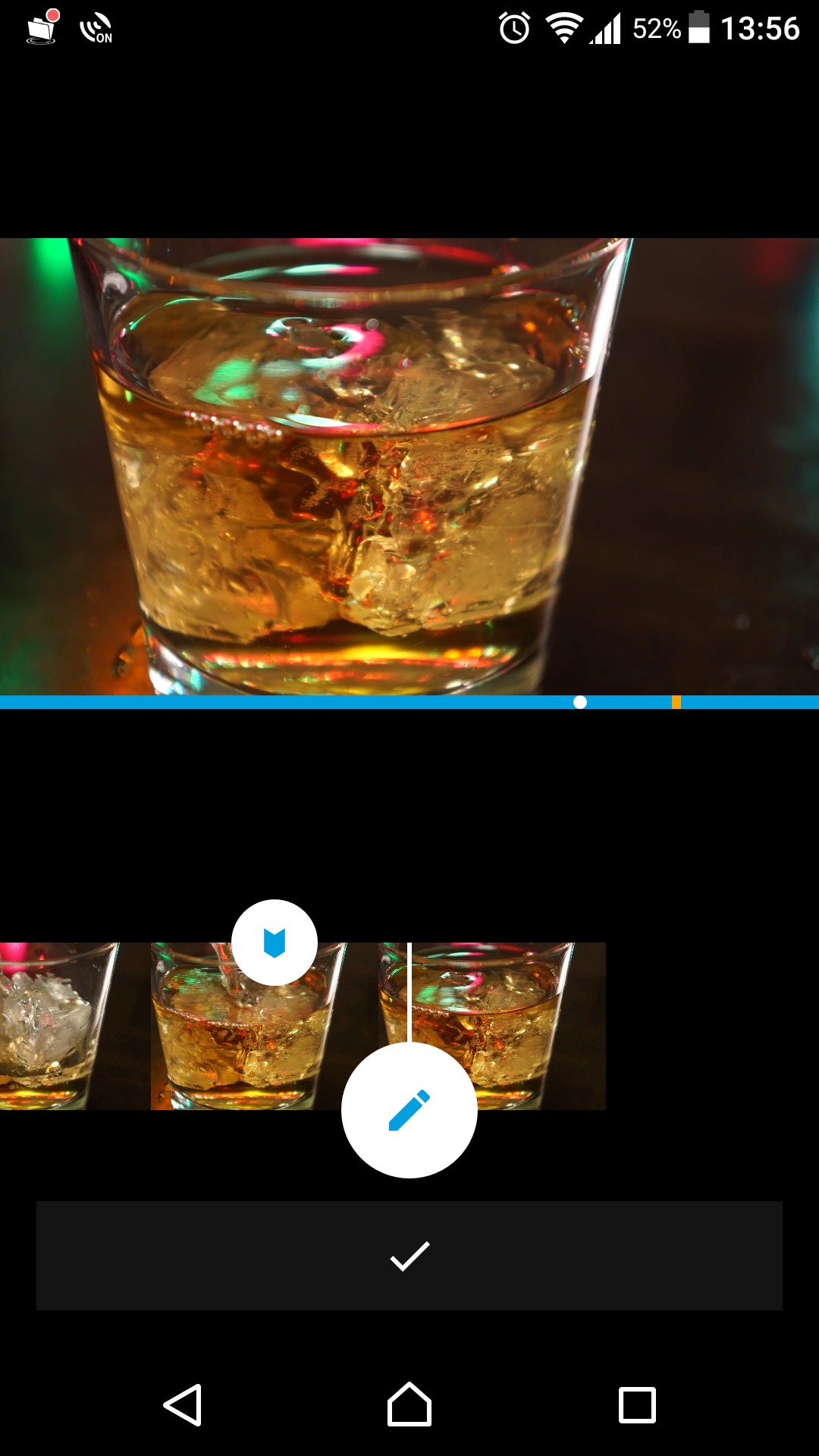 Quikは自動で使用するシーンを見つけてくれますが、選択した動画の中でどうしてもここは外せない!という「見せ場」となるシーンがある場合は、「HILIGHTを編集」をタップして、ハイライト編集画面に移りましょう。選択した動画の見せ場の部分をタップして記憶させておくことで、そのシーンが確実に使用されるようになります。すべて選択し終えたら右下のチェックマークをタップ。