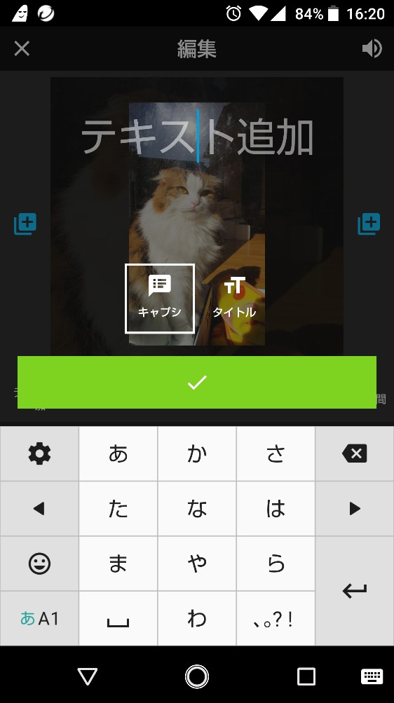 「タップして字幕を入力」と表示された箇所をタップすると字幕入力画面に移ります。