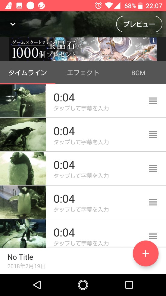 縦向き、横向きと正方形の画面比率を選んだら動画や画像を選択していくと動画のプレビューが表示されます。