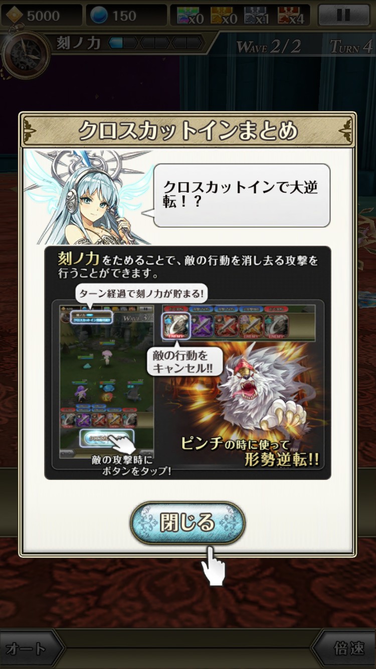 敵の攻撃ターン中に「クロスカットイン」を発動すると、行動がキャンセルされて、更には強力な攻撃を浴びせることが出来るのです。