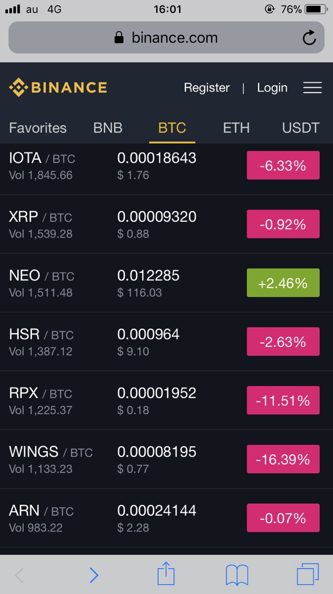 今後の価格上昇に期待し、NEOを購入したいと考える人もいるかもしれませんが、現段階では日本の仮想通貨取引場には上場しておらず、海外の取引場での取引となります。海外の取引所の中でも、取り扱っている種類が多く、初心者向けなのが「BINENCE(バイナンス)」になります。BINENCEもNEOと同じ中国発の取引所で、世界でも上位に上がるほど取引高のある取引所です。
