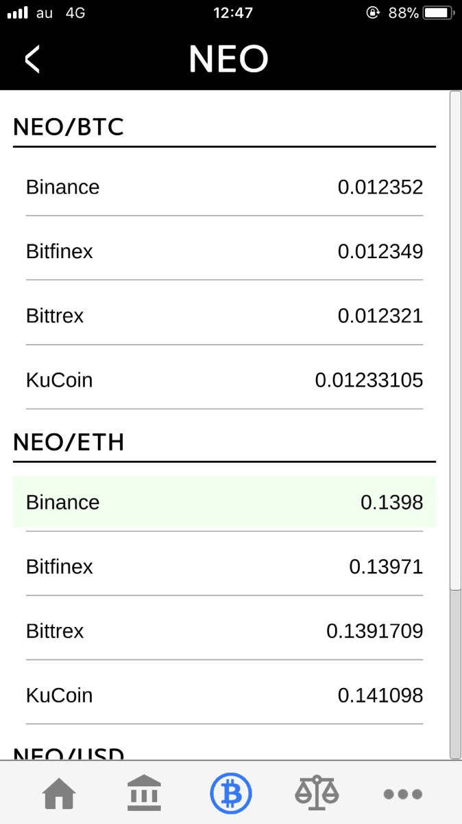 コイン相場は、取引情報をチェックすることができ、価格やチャートだけでなく最新のニュースなども見ることができるお役立ちアプリです。NEOの取引が行われているBINENCEを始め、複数の取引所のリアルタイムチャートや上昇率・下降率ランキングなども見ることができ、マーケットの動きをリアルに感じることができます。