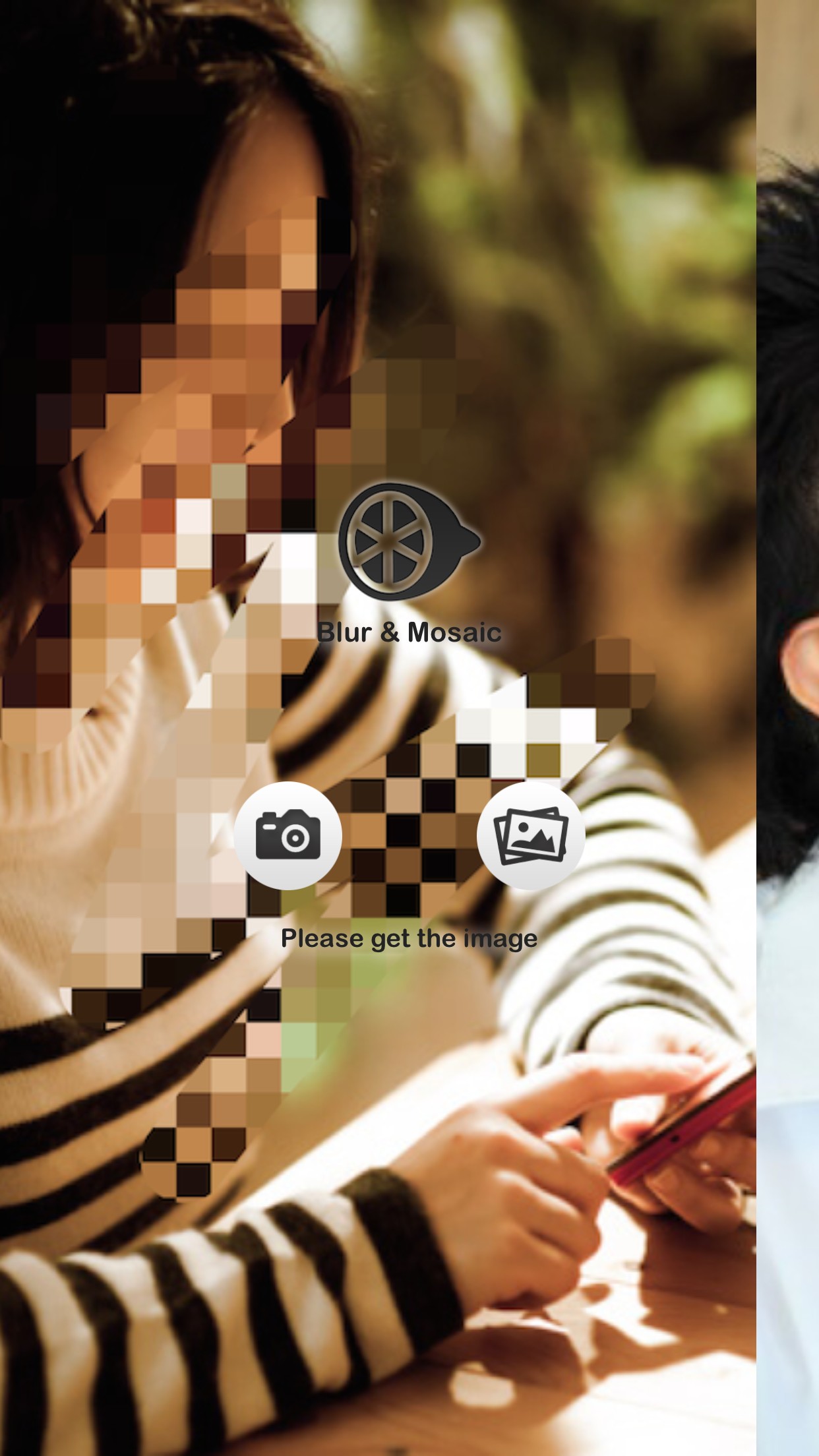 ホーム画面からカメラを選択することで、撮影した直後にモザイク加工が行えます。