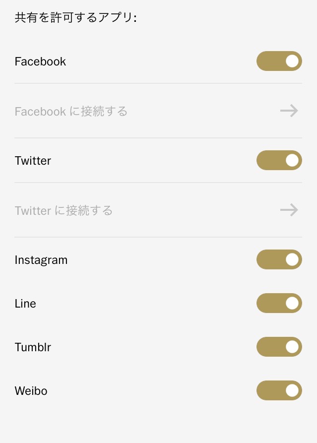 VSCOでは、Instagram・Facebook・Twitter・Tumblr・Line等のSNSへのシェアに対応しており、メッセージやメールでのシェアも可能です。