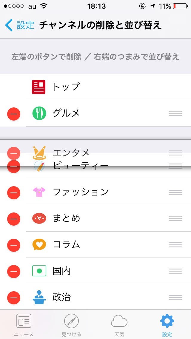 編集を施すと、興味のないカテゴリーを消したり、並び替えたりできるのです!