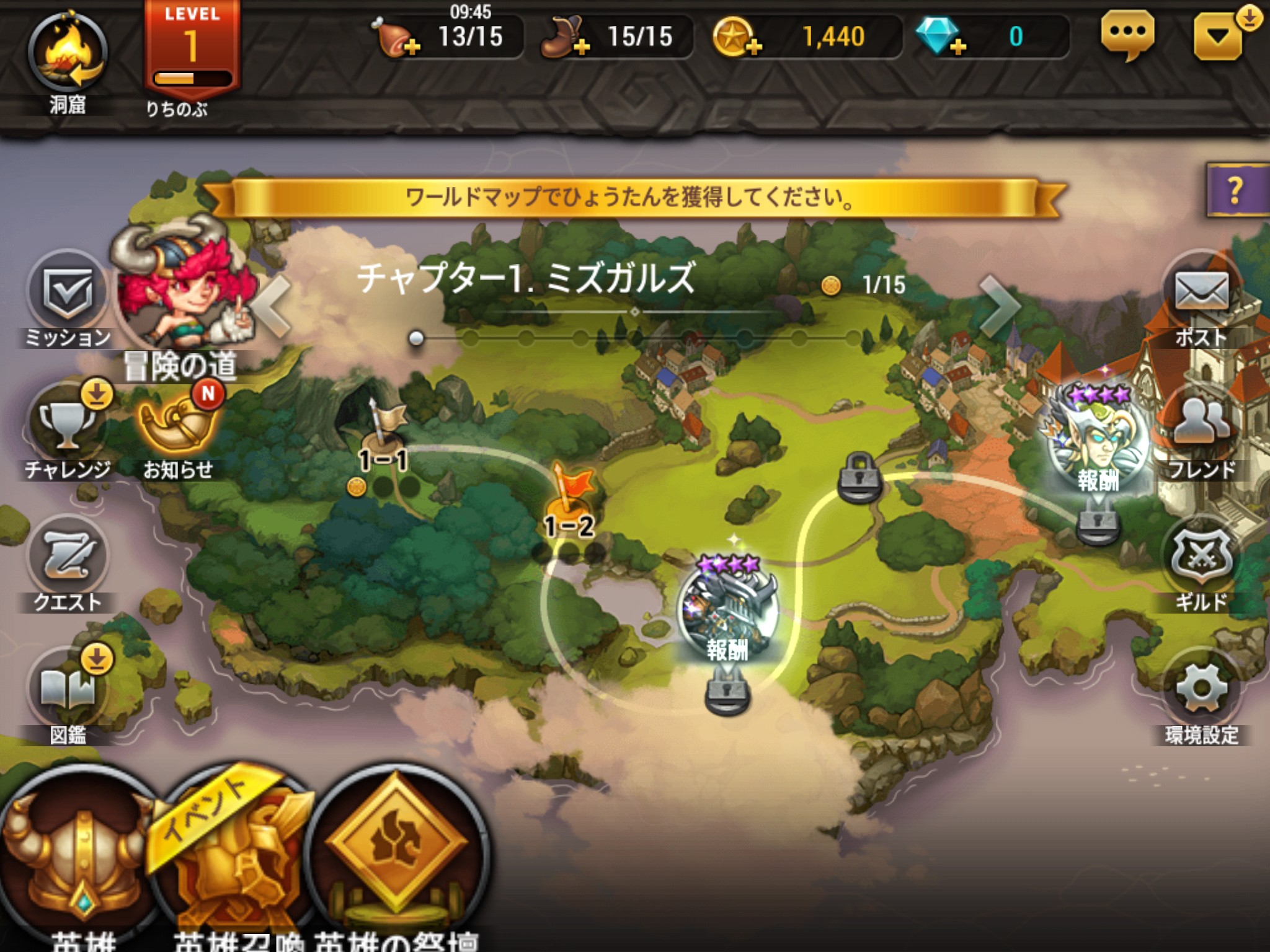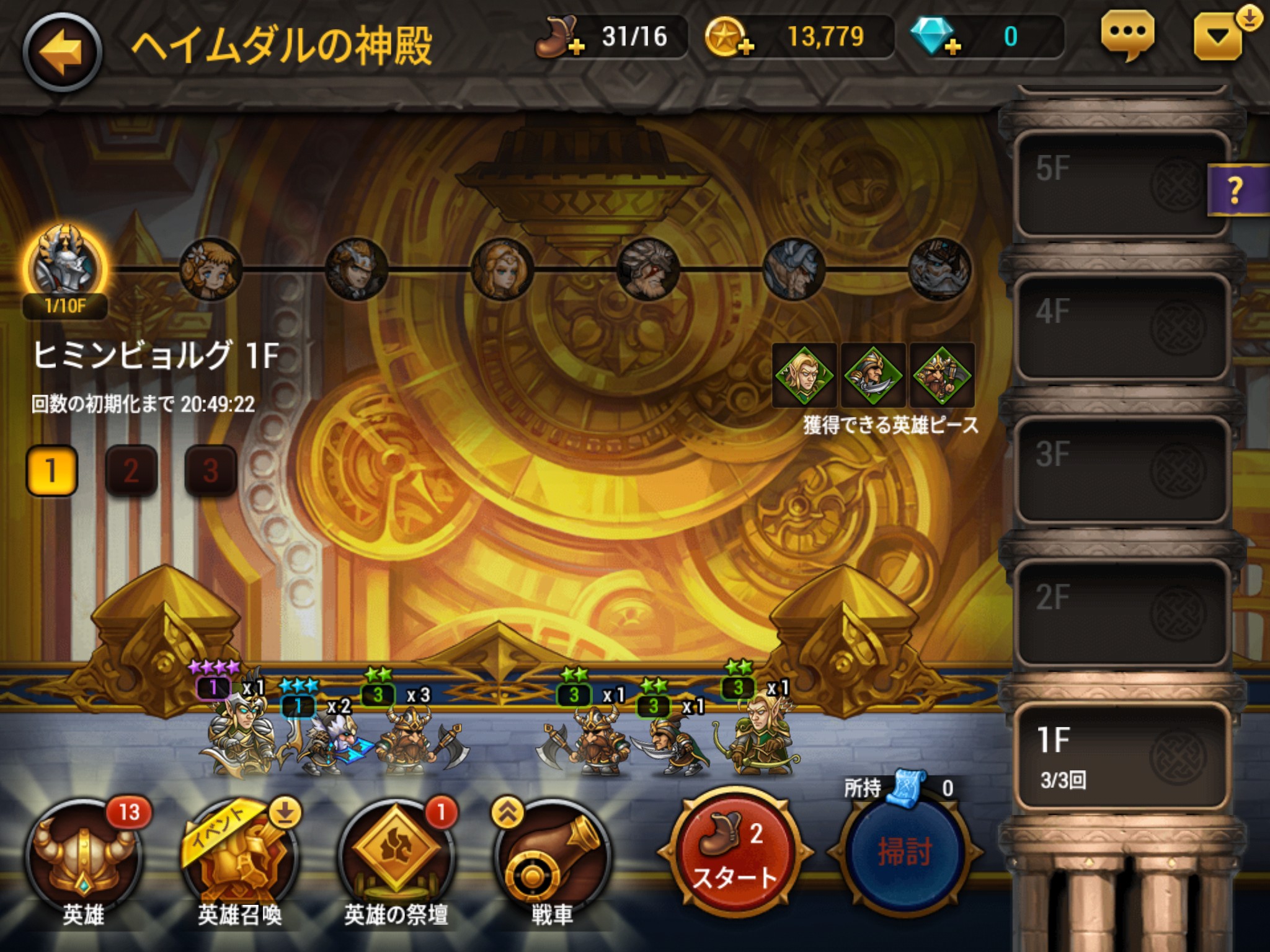 ここではユニットを召喚できる「英雄の欠片」を獲得できます。