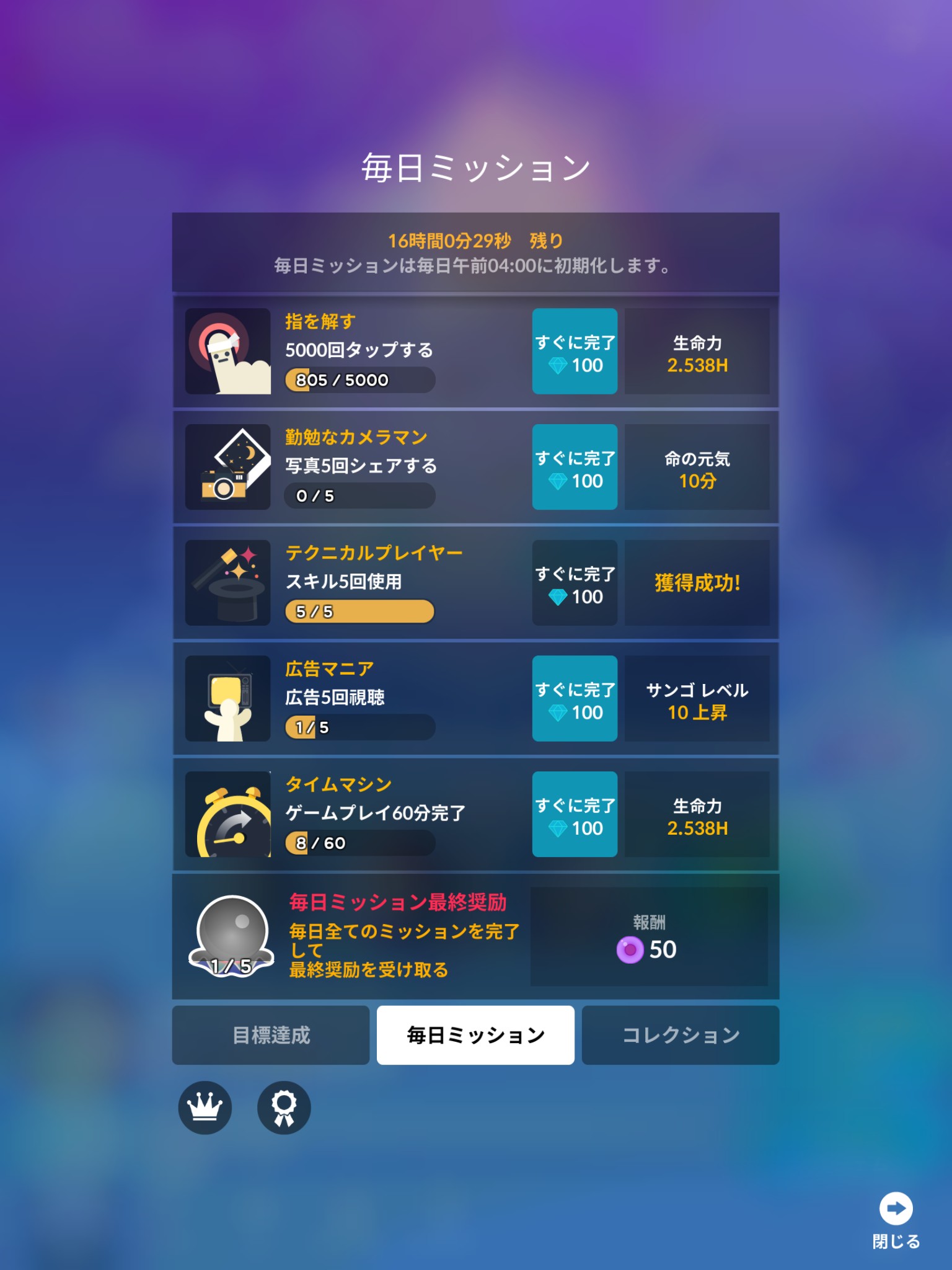 短い動画視聴をするだけで、量としては少ないのですがジェムを手に入れることができます。生命力をまとめて手に入れられることもあります。真珠に関しては、ミッションをこなしていく必要があります。ジェムも手に入れられます。