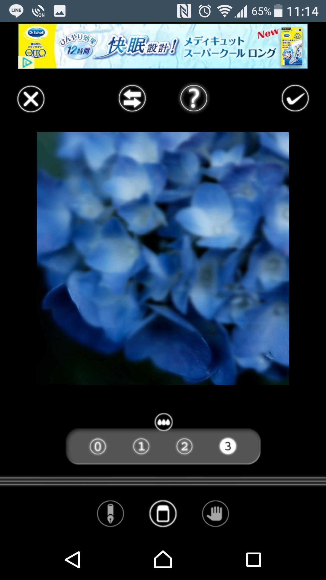 自由に加工して、いよいよ「これ」という一枚が完成したら、画面右上の下向き矢印をタップで保存することができます。