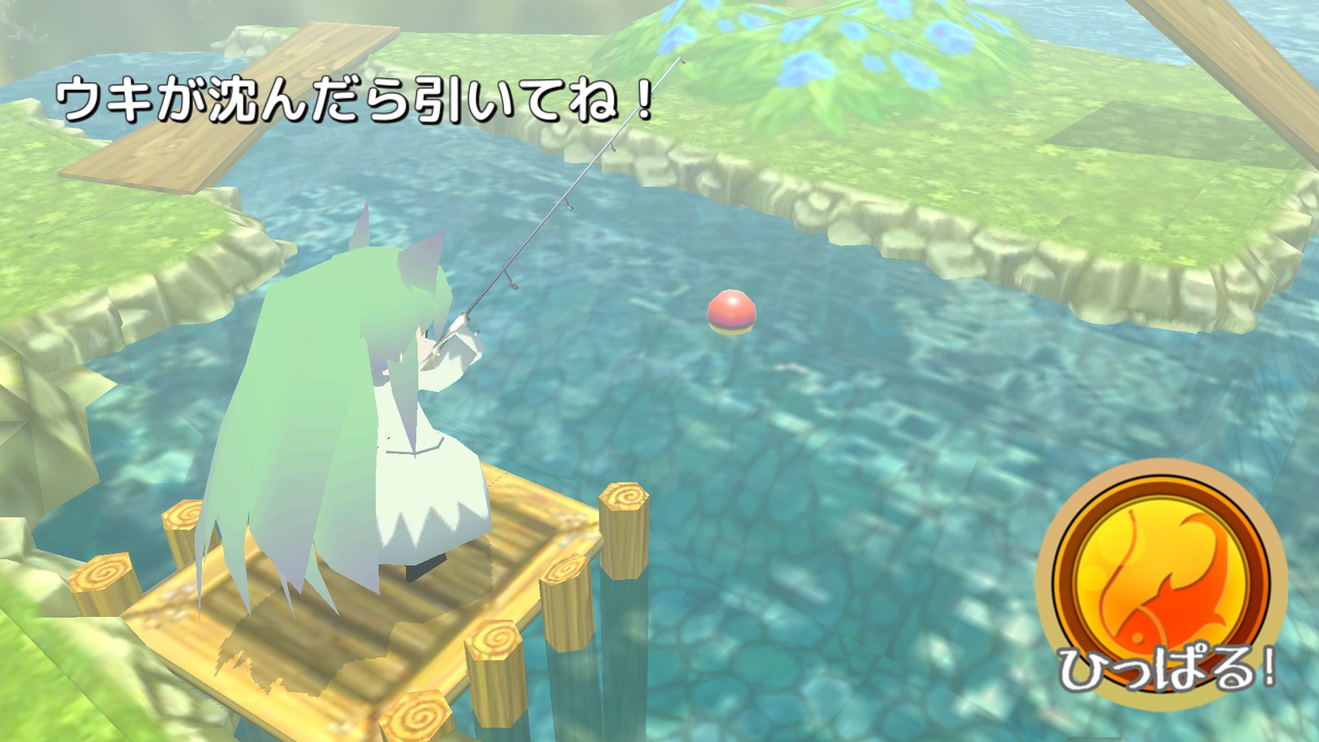 森に住んでいる色々な不思議な生き物たちと会話をしたり、バトルをしたり釣りをして、薬の材料を集めていきます。