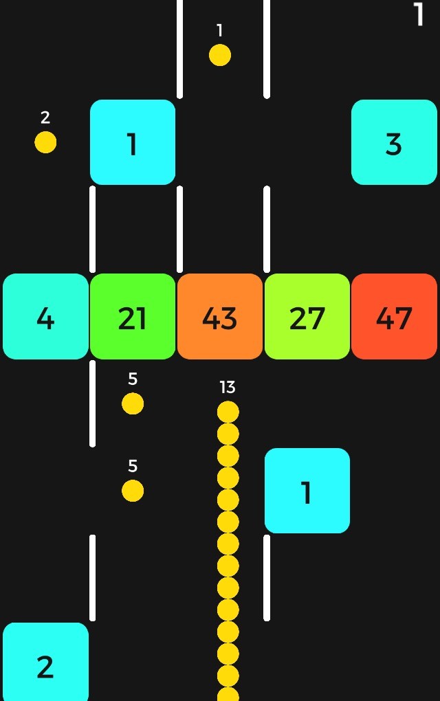 レンガを壊すにはただぶつかりに行けばいいだけですが、書かれている数字の数だけボールが必要で、ボールを消費してレンガを壊していきます。