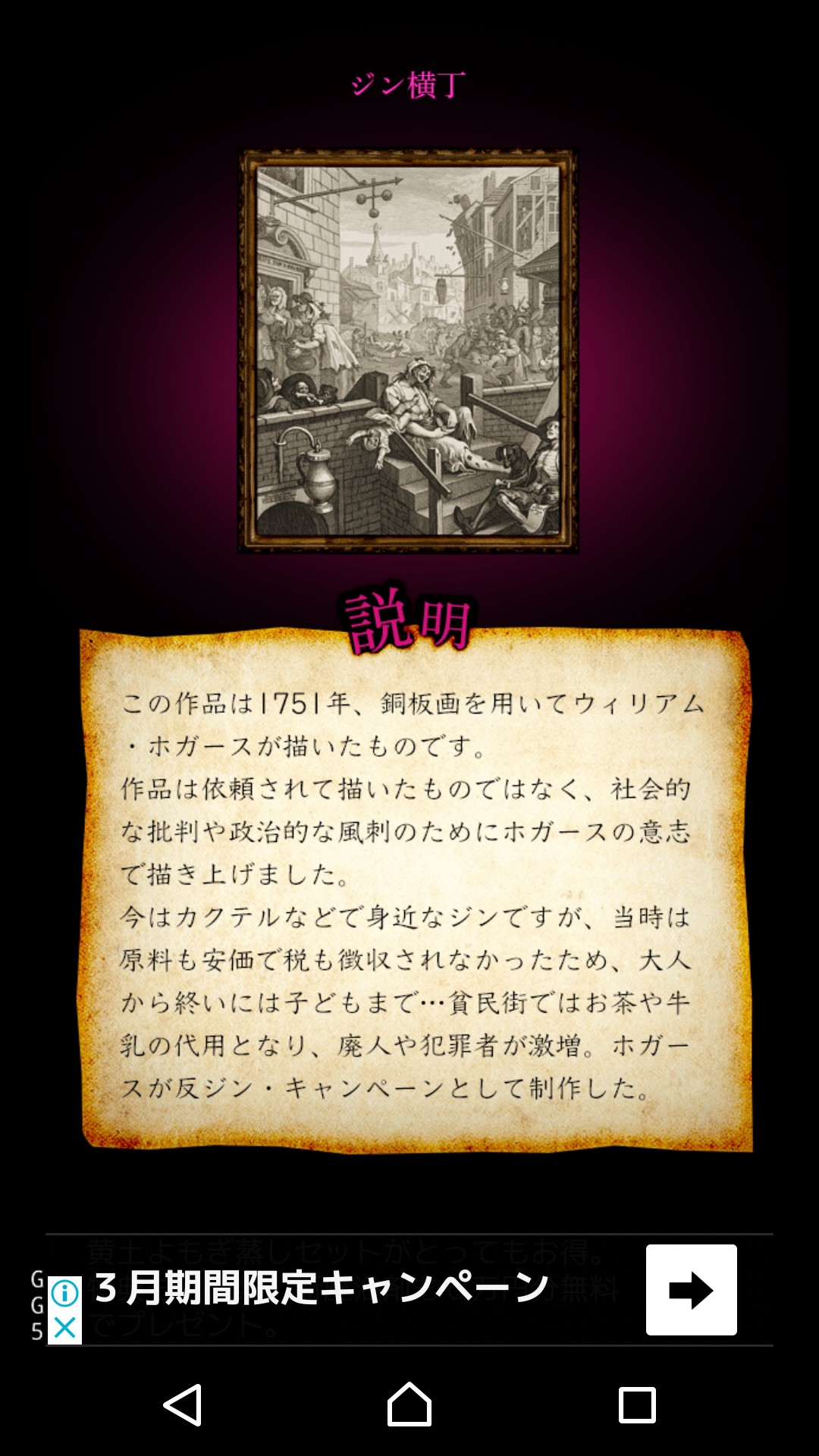 みなさん「恐い絵」を知っていますか?名画を解説していくと、美しさの奥に恐怖が浮かび上がってくるというもので、美術館でも展覧会が開催されるなど、密かに絵画ファンの間でも注目を集めています。そんな「恐い絵」がより身近に体験できるようになったのがこのアプリ「恐い絵」です。このアプリは、絵画に隠された恐い秘密を暴いていく無料クイズゲームで、アプリランキングでは何度も上位に位置しています。また、登場する絵画は展覧会で展示されたこともある名画ばかり。名画が私たちの恐怖心を煽り、楽しませてくれるでしょう。
