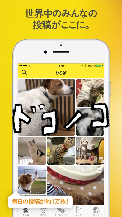 が書かれています。アプリをインストールしたら、まず目を通してみてください。「ドコノコ」の「ひろば」にアップされている写真は、どれを見ても飼い主さんの愛情が溢れています。