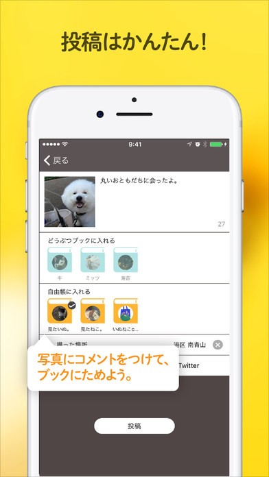 仲間の輪が広がります。「ひろば」には犬猫の写真がたくさんアップされています。現在犬・猫を飼えない、飼っていない人も楽しめるアプリです。
