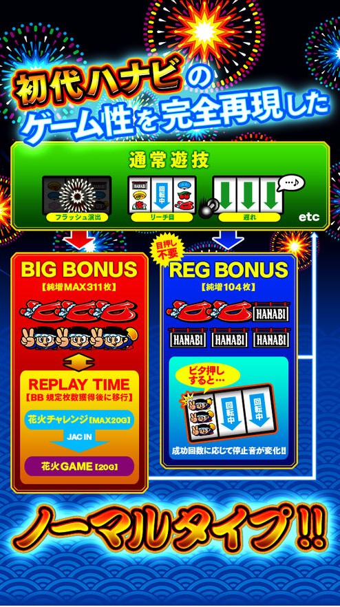 パチスロ好きなら楽しめること間違いなしのハナビ(2015)がアプリで登場!