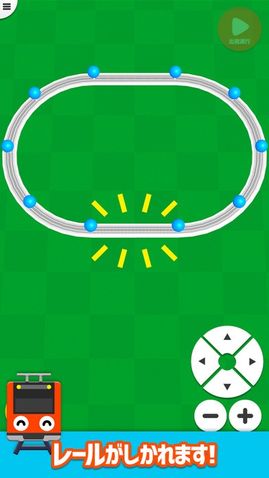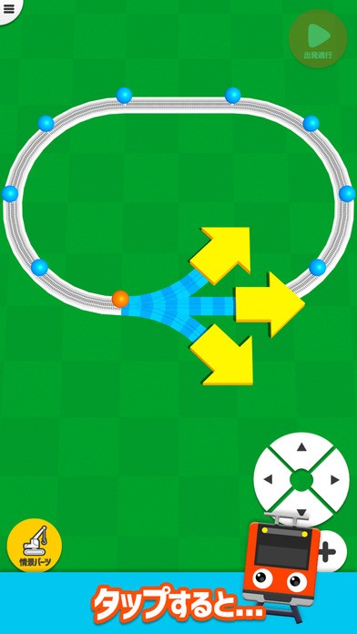 画面をタップするだけでレールを敷くことができ、レールを並べたい方向の矢印をタップすれば、その方向へレールを設置できます。