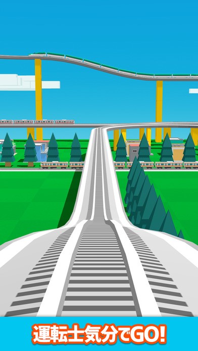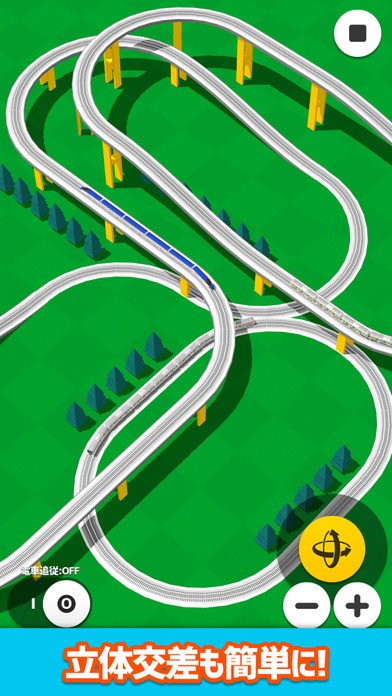 レールは画面をタップするだけで引くことができ、電車や新幹線を高架橋に登らせたり、分岐させてみたり、レールはプレイヤーの自由に引くことが出来ます。
