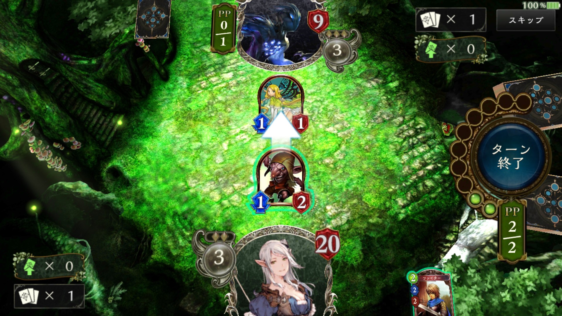 初心者にもなじみやすいルールのカードゲームです。三角形の頂点3つにそれぞれ手札の中からモンスターを配置し、スキルを考慮した上で合計戦闘力の高いプレイヤーが一勝、二本先取で勝利です。コストが10以内での配置となるため、先を見据えた上で手札を選びましょう。シンプルなルールながらも読み合いが深く、一度のプレイも短めです。素材によりカードを生成できるため、課金をしなくてもコツコツカードを揃えられることも嬉しいポイントです。