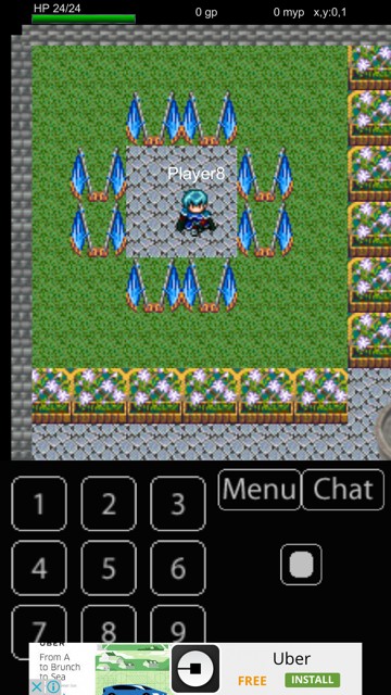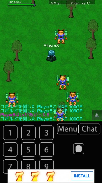「ドラゴンアタックオンライン」の移動は、十字キーを押したり画面をタップするのではなく数字キーを使います。上下に進みたいときは2と8、左右に進みたいときには4と6をタップすると進むことができます。