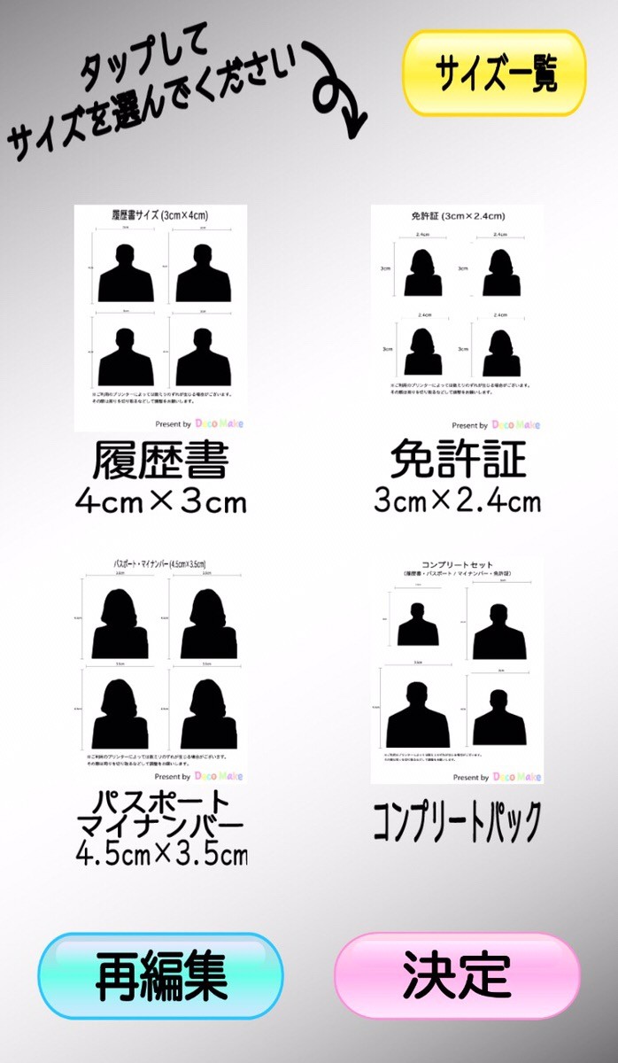 このアプリで選択できるザイズは、きっとあなたの希望を叶えてくれることと思います。