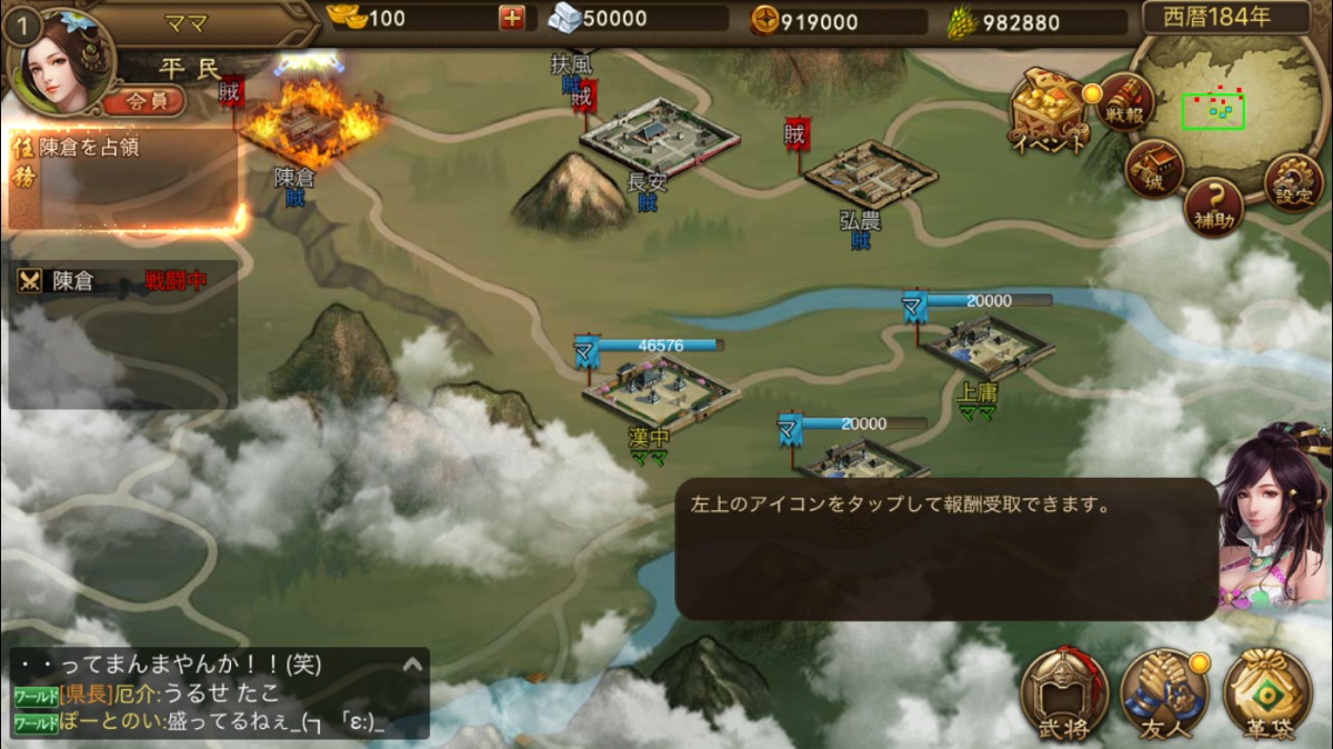 時間をかけてプレイするのも良いですし、空いた時間にコツコツプレイするのも良いです。領地を奪い合いながら戦うので、寝ている間に他のプレイヤーに攻め込まれる可能性もあり、ハラハラドキドキ!しかし、「我が天下:乱世演舞」では午前1時から午前9時の間は、他のプレイヤーの領地に攻め込んでいくのに兵糧が通常の5倍となるため、眠っている間に滅亡した!ということが少ないのもいいですね。そして、各キャラクターの美声にも注目。キャラクターに合ったボイス付きでうっとりします。