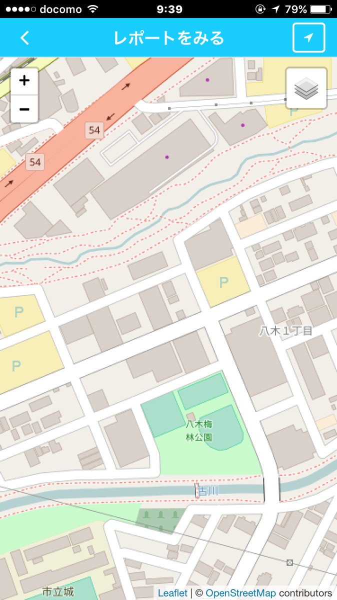 まず『FixMyStreetJapan』をダウウンロード後、レポートすると表示された画面が出るのでそこをタップします。