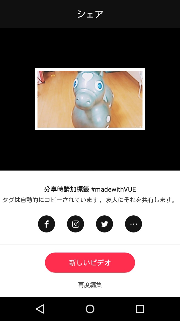 作った映像作品をプレビューして納得いくものなら、保存しましょう。「VUE - プロの愛用ツールとフィルター」を使えば、映像を撮影・編集・加工するだけでなく、好きなSNSを選んでシェアすることができます。