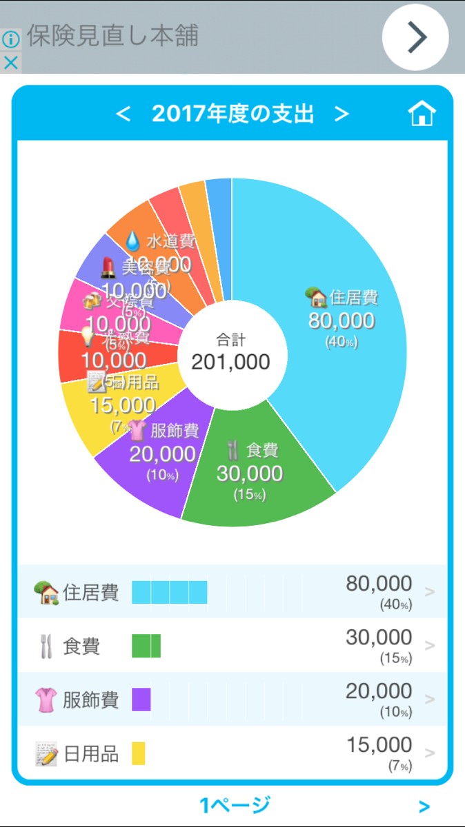 - 支出は円グラフや棒グラフで分かりやすく表示してくれる