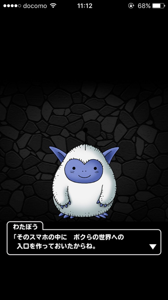 ゲームがダウンロードできたら「わたぼう」というガイドキャラクターが出てきます。ガイドに従いゲームを進めましょう!まずは、洞窟を探検します。