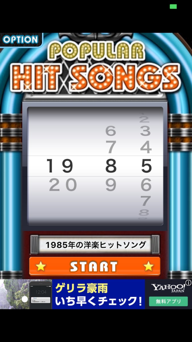 ・トップ画面から年代を入力すれば、その年のヒット曲がランキング形式で表示されます。
