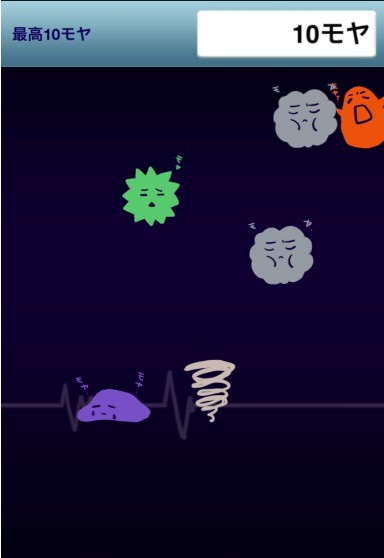 タップが間に合わず、「モヤっと」が境界線を越えてしまうとゲームオーバーになります。