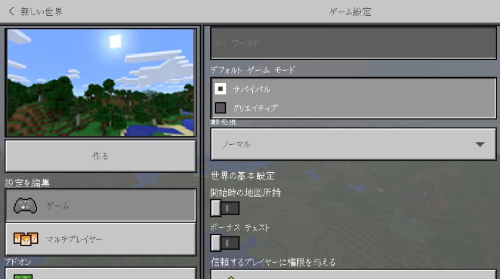 「世界を新しく作成」をタップしたら、ゲームモードを選択してください。