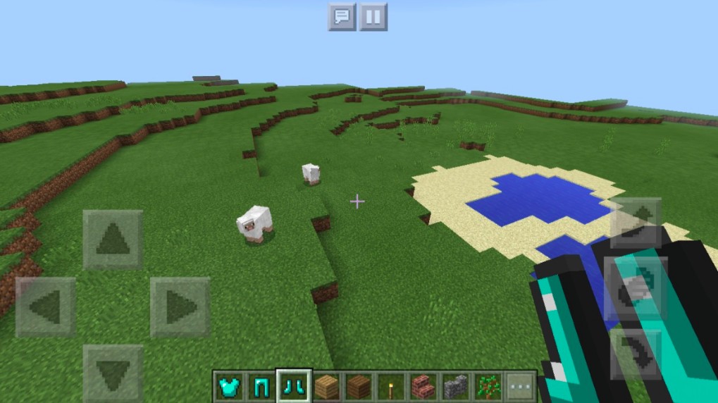 もしも羊を見つけることができたら、少しかわいそうですがですが、アイテムで倒してみてください。羊は食料になるだけでなく、ベッドを作成する際の材料に使うことができます。