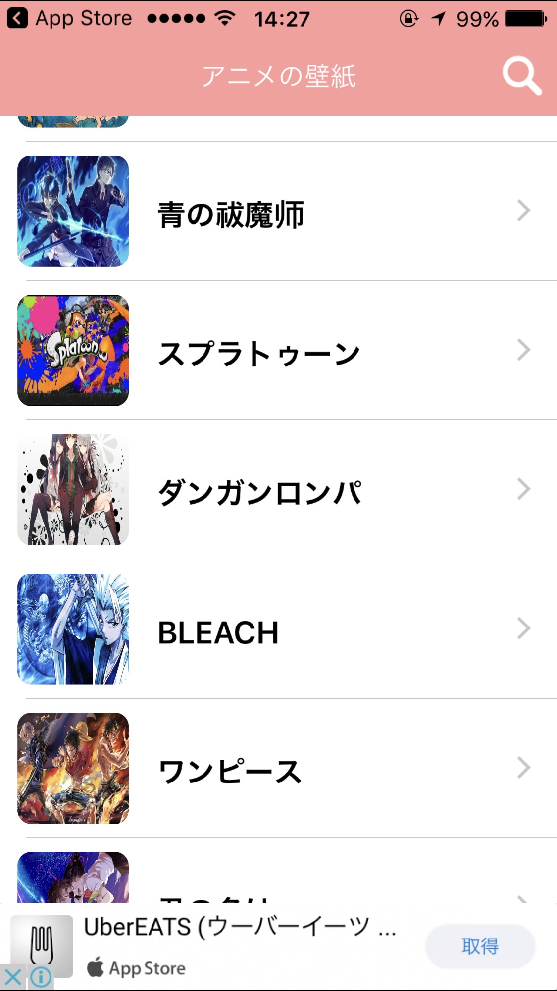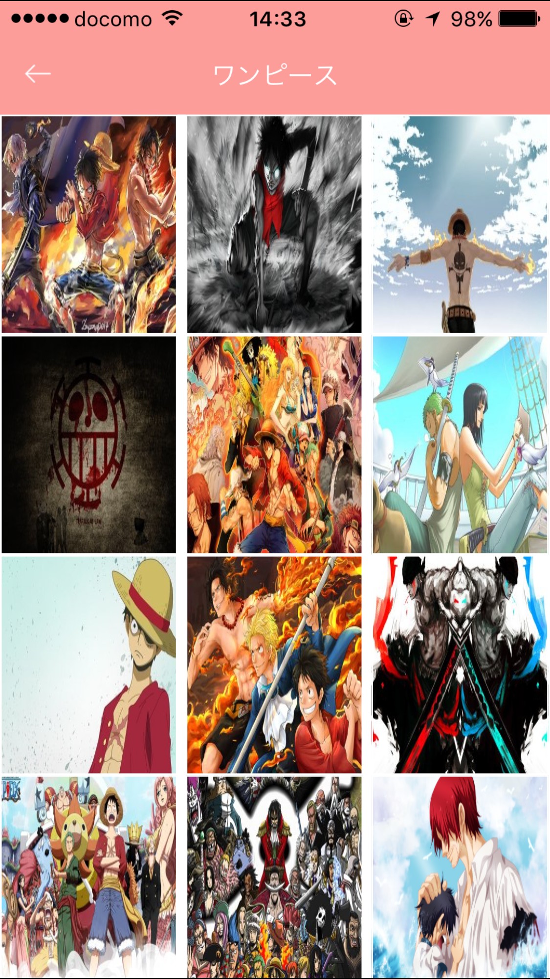 ・好きなアニメをタップすると壁紙が数十種類表示されます。そこから好きな壁紙をタップします。