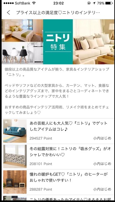 例えば、インテリアに興味があるという人は、ピックアップの下にインテリアを移動させると、