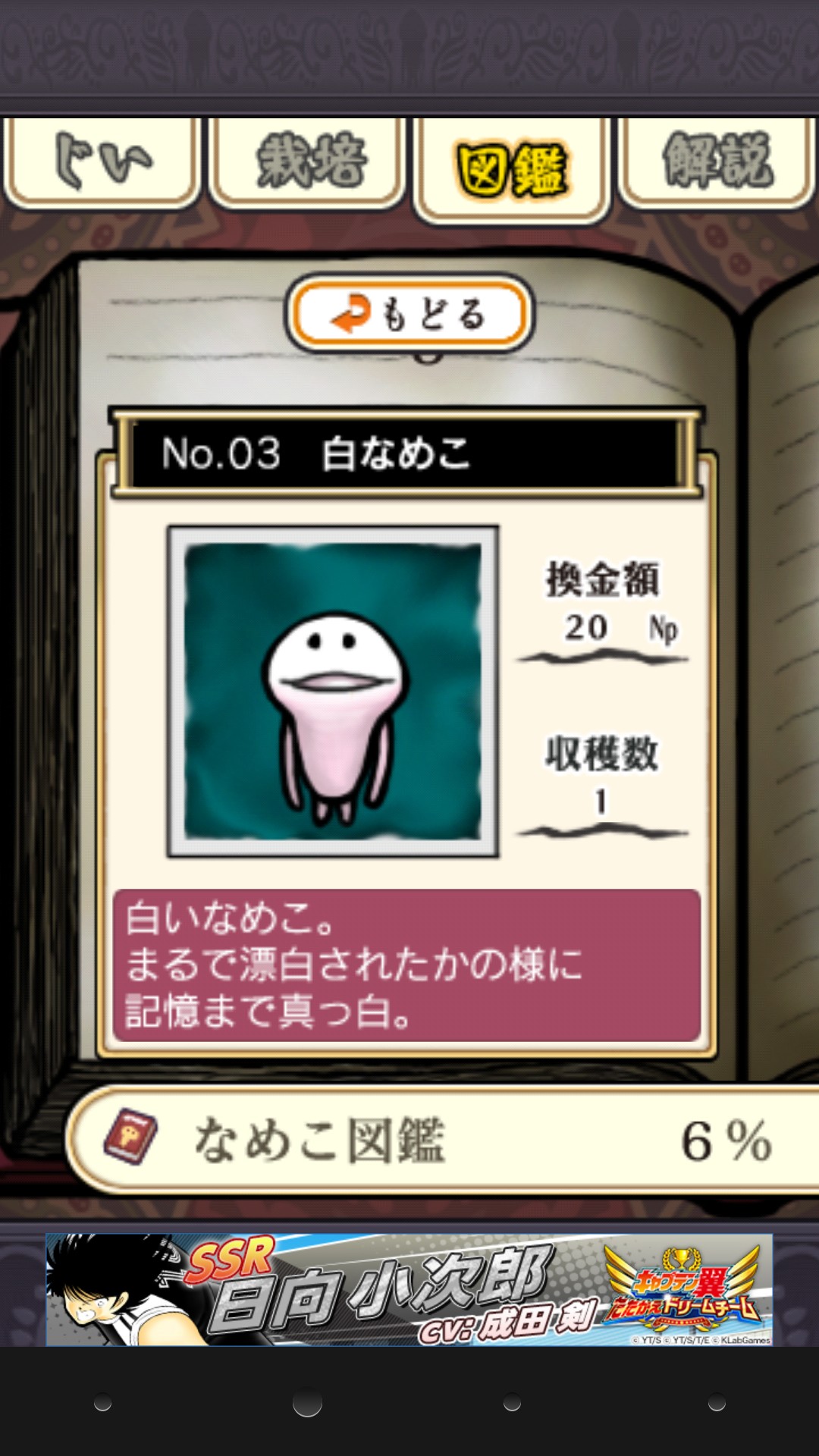 【3】新種なめこを収穫したら図鑑をチェック。30種類確認されているなめこ達をコンプリートしよう!