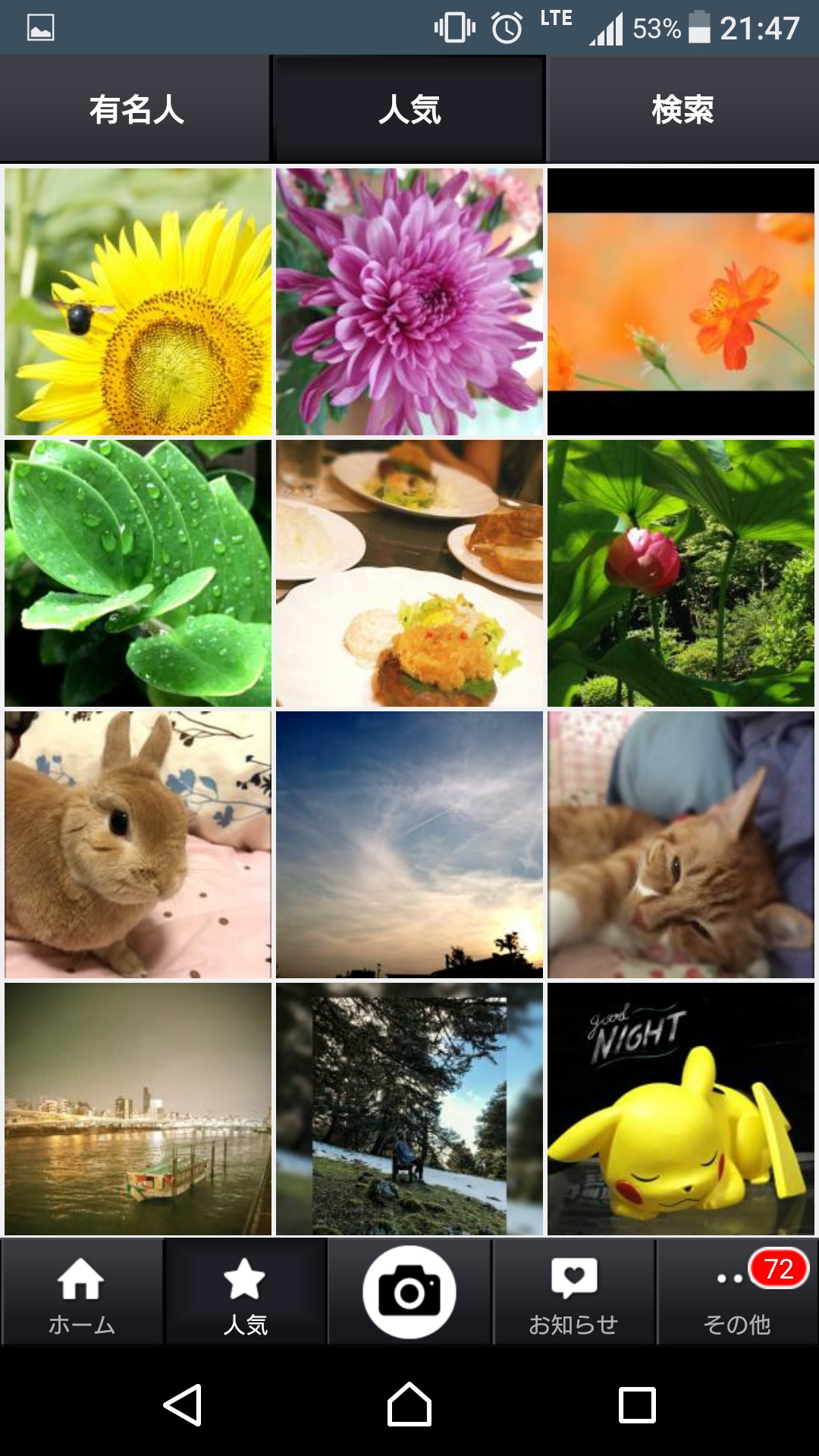 例えばアプリ内で写真をシェア出来たり、有名人の写真を見ることも出来ます。