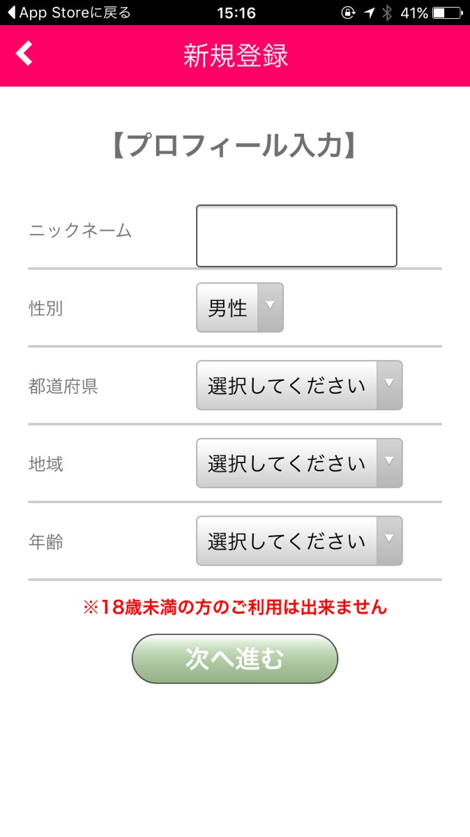 アプリをインストール後、ニックネームや性別などの簡単な会員登録をする必要があります。利用規約が表示されているので、よく読んで納得した後、次に進みましょう。