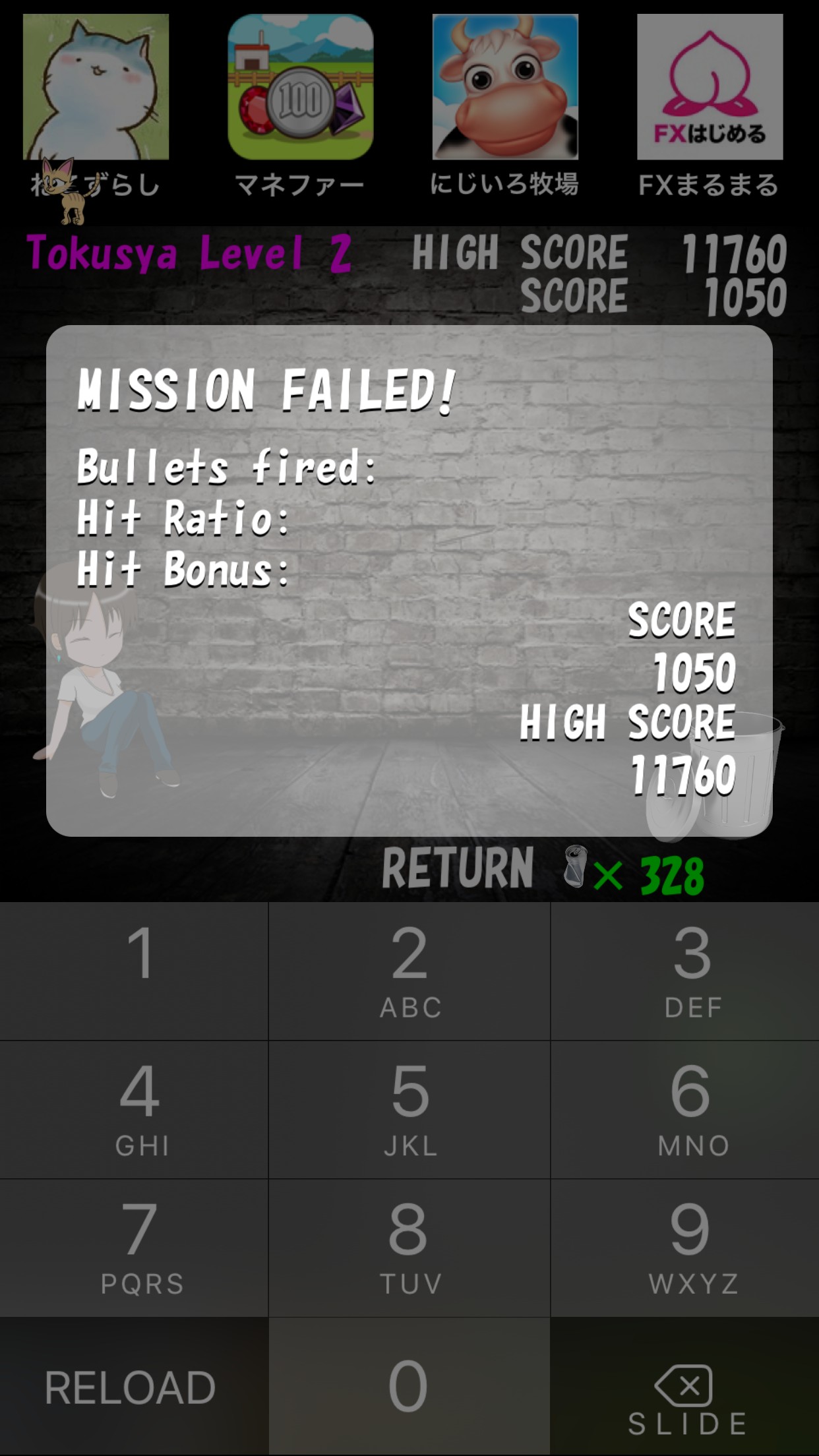 ただし、弾切れは起こるのでRELOADは引き続き気をつけてタップする必要があります。