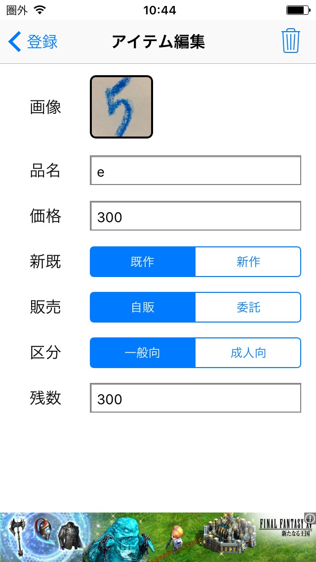 マス目をタップするとアイテム編集画面になります。