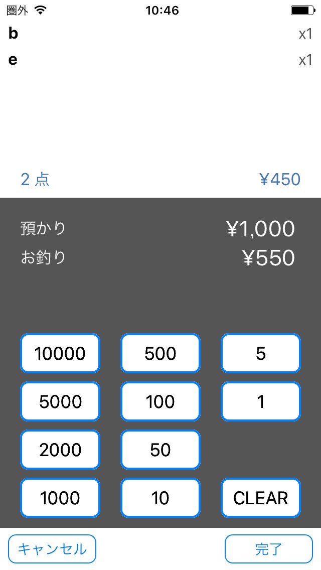 ・合計額、おつりは自動計算。