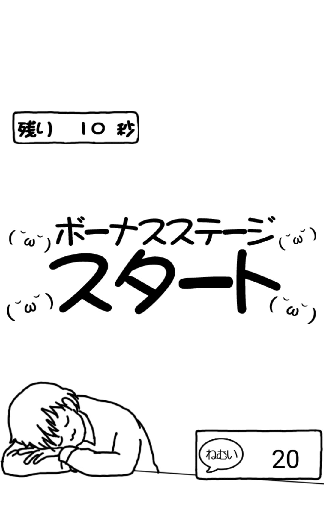 「ボーナスステージ」に突入すると10秒間「ねむい」のもとを集め放題がはじまります。1つ1つタップしていると時間がかかり過ぎるので、スワイプして一気に集めましょう。