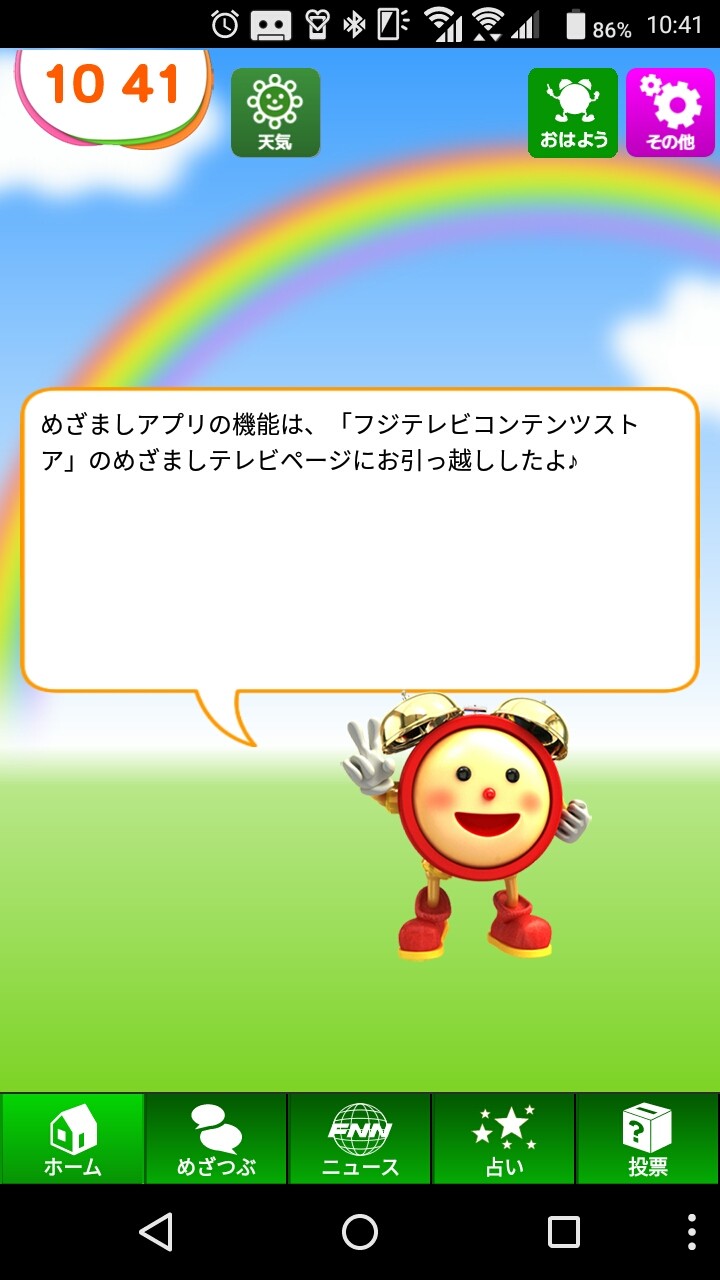 公式キャラクターのめざましくんが、アラームだけでなく、番組に関するみんなのつぶやきや感想なども紹介してくれて、番組との連携が特徴のアプリです。