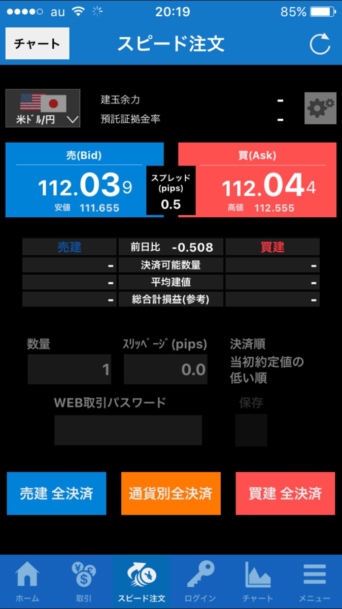「ネット銀行FX取引「Oh!FX」」は簡単操作に加えて、事前の設定をしておくことでワンクタップのスピード注文をすることができます。Oh!FXの口座開設をしている方で、FXの取引を素早く行いたいと思っている方は、ぜひインストールしてみてください。