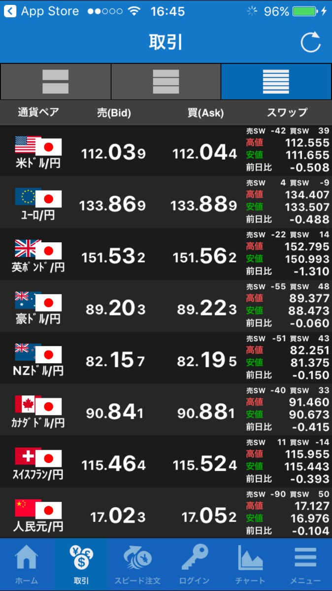 20通貨までのペア取引をすることができます。新規・一括決済・決済の注文の他、注文の訂正や取消を行うことが可能です。