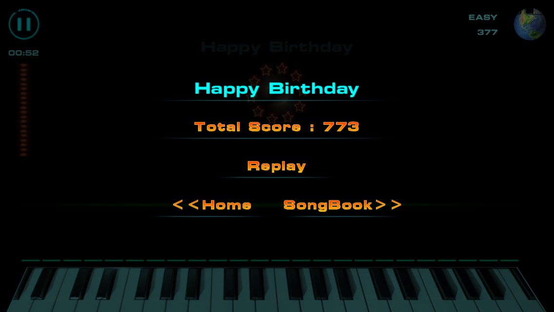 鍵盤はどこをタップしても、その時に出るべき音が出るので、あとはタイミングを合わせて画面をタップすれば、ピアノを弾いたこともないあなたもピアノが弾けちゃうんです!
