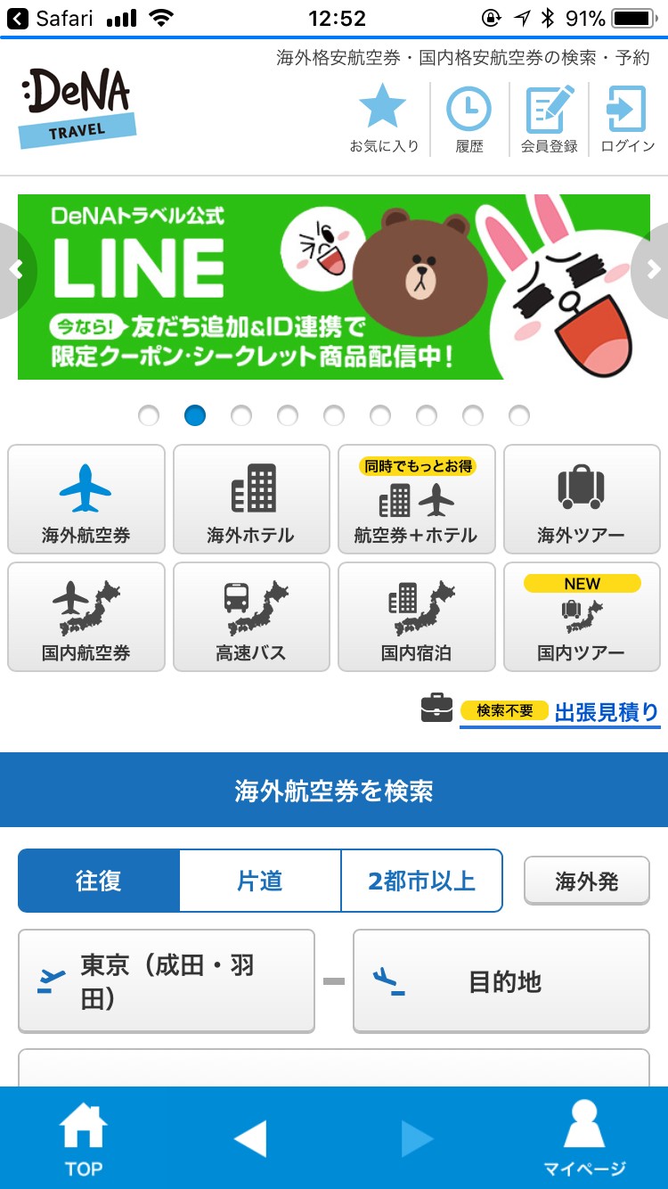 旅行会社大手のDeNAトラベルの公式アプリです。