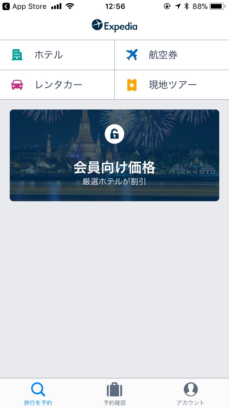 航空券やホテル、レンタカーなどを予約できるアプリです。